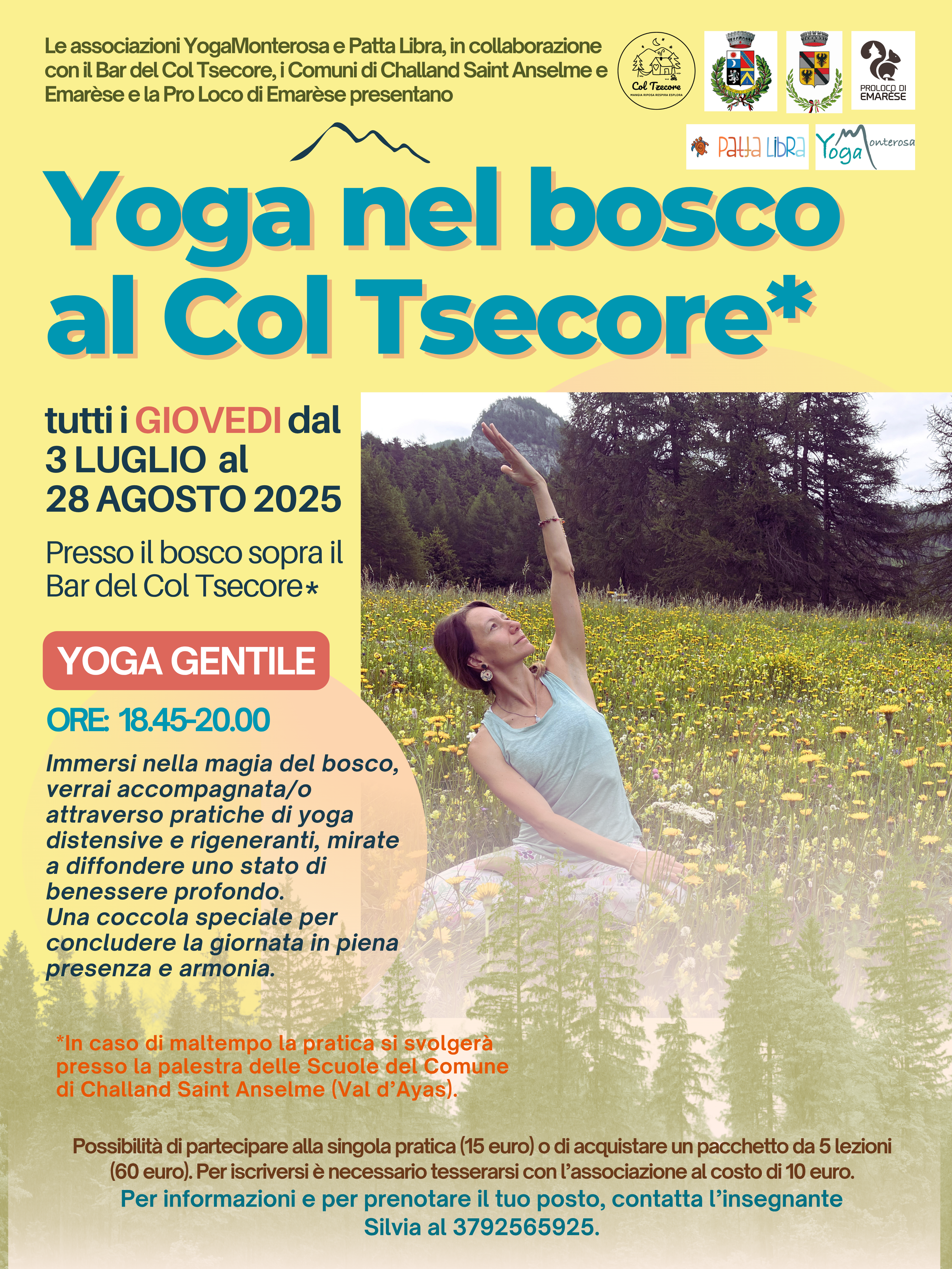 Tutti i giovedì dal 03 luglio al 28 agosto 2025 presso il bosco sopra il Bar del Col Tsecore Yoga gentile