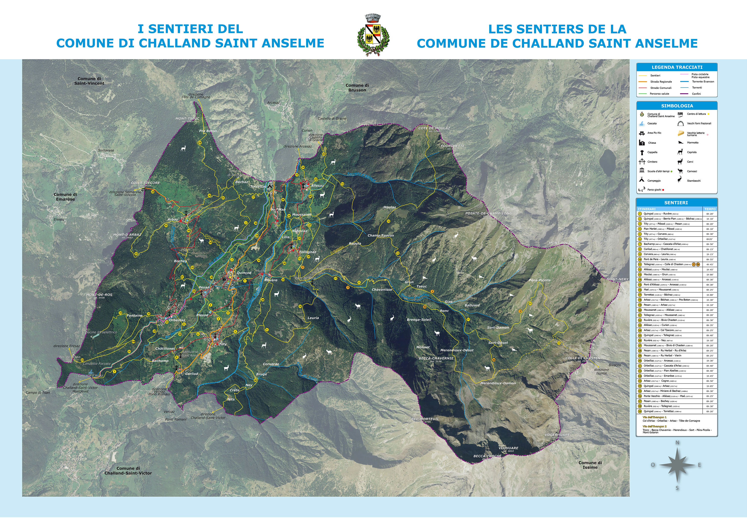 Cartina dei sentieri del Comune di Challand Saint Anselme