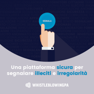 Si tratta di una piattaforma informatica attivata nell’ambito del progetto WhistleblowingIT [WhistleblowingPA per le Pubbliche Amministrazioni] promosso da Transparency International Italia e Whistleblowing Solutions Impresa Sociale che permette di inviare segnalazioni di illeciti di cui si è venuti a conoscenza in maniera sicura e confidenziale.