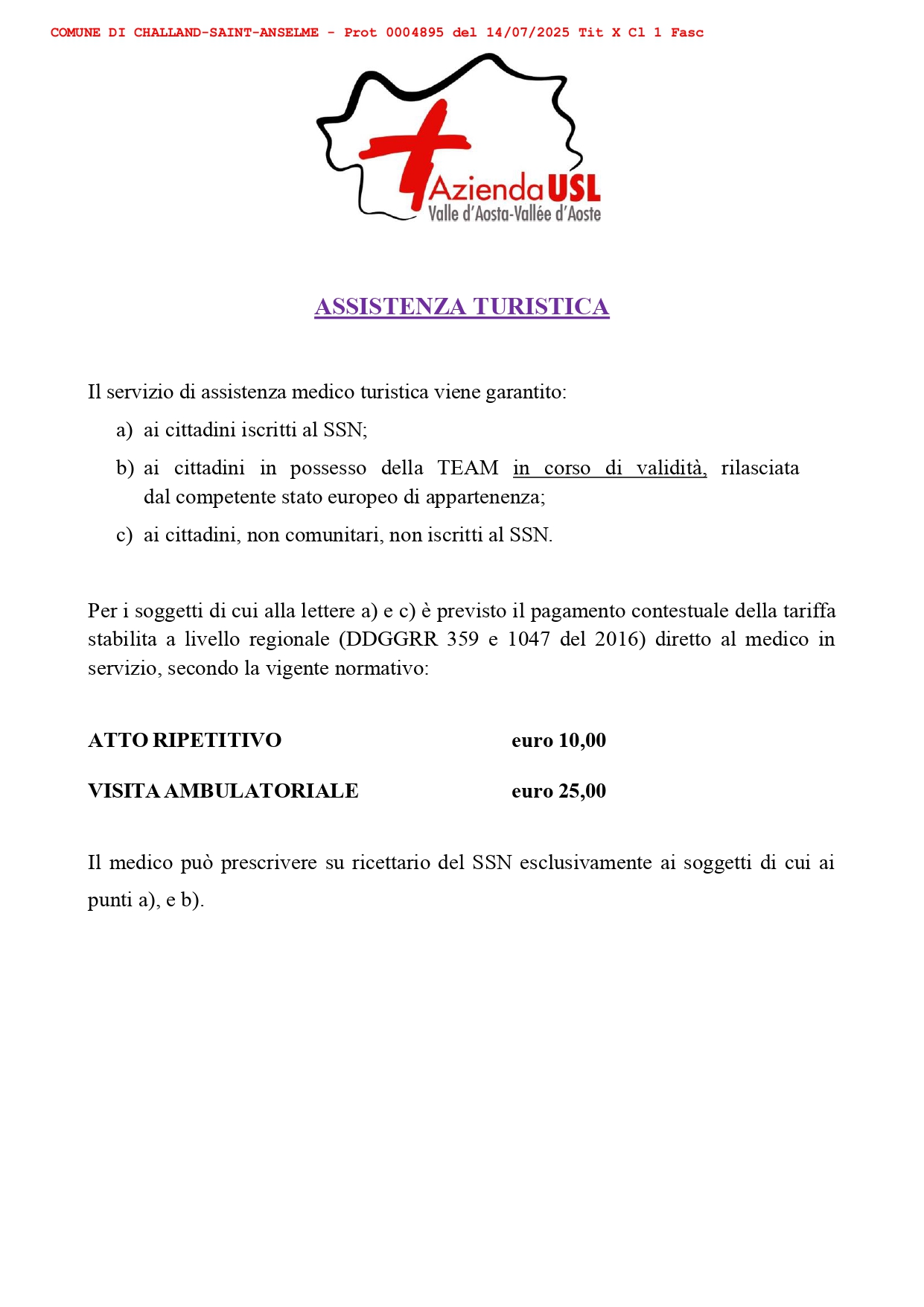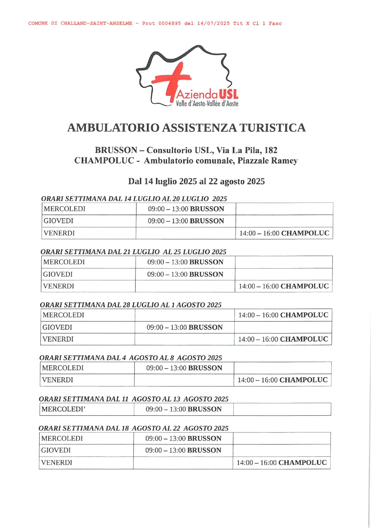 Attivazione ambulatori assistenza turistica dal 14 luglio2025 al 22 agosto 2025
